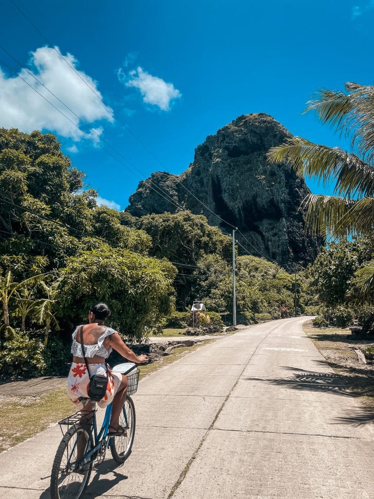 L’île principale de Maupiti est entourée d’une route d’environ 10 kilomètres, ce qui permet de la parcourir facilement à pied ou à vélo. C’est l’occasion idéale de découvrir la beauté des paysages, les maisons colorées et de rencontrer les habitants chaleureux. La location de vélos est possible dans certaines pensions ou chez des habitants, pour environ 1500 F XPF la journée.